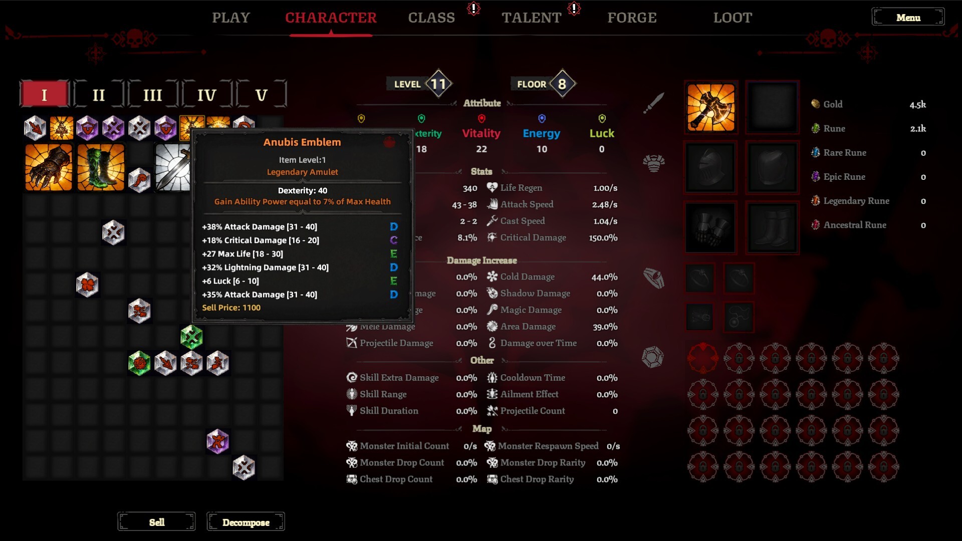 👉L’équipement occupe également une place importante. SlimeSlayer propose de nombreux objets uniques, des affixes et un système de Gemword permettant de transformer certaines pièces d’équipement en véritables éléments centraux de build. L’objectif est de créer des synergies puissantes pour aller toujours plus loin.